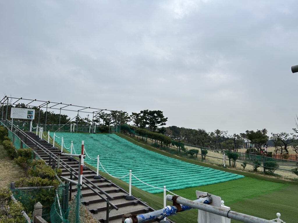 交通公園内には芝すべりができる場所もある。