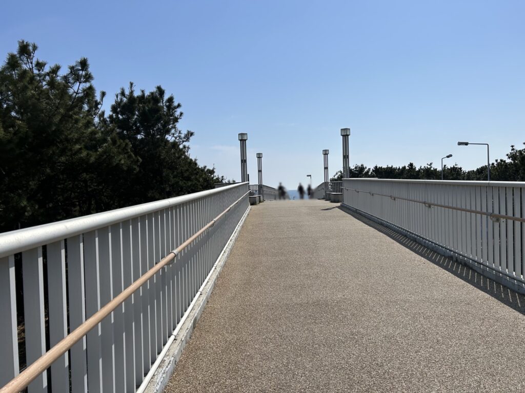 散歩・気分転換としてちょうどいい距離で、砂浜までは舗装された道なので、ベビーカーも使える。
